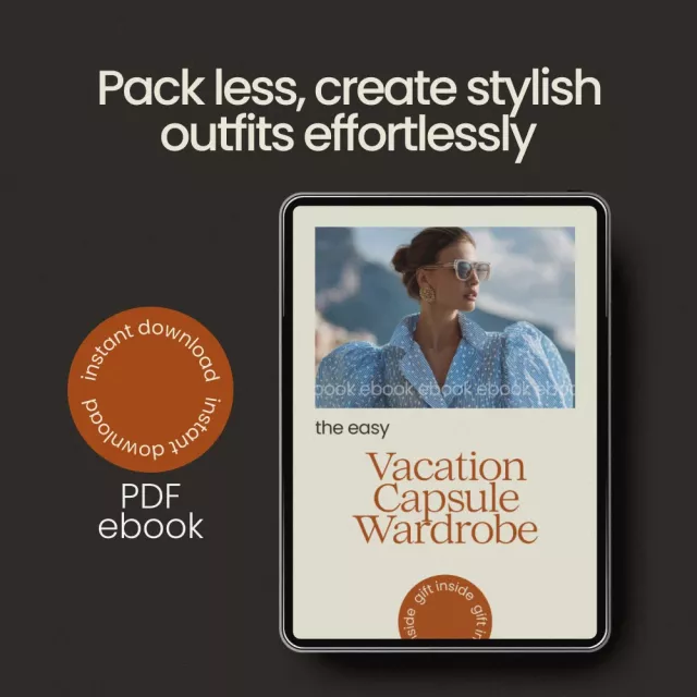 Say goodbye to overpacking and outfit stress. The Easy Vacation Capsule Wardrobe is your step-by-step guide to creating a streamlined, stylish travel wardrobe that works anywhere you go. Whether you’re heading to the beach, exploring a city, or planning a mixed-destination trip, this practical and easy-to-follow eBook shows you how to build a vacation capsule wardrobe that maximizes outfit options while minimizing what you pack.
